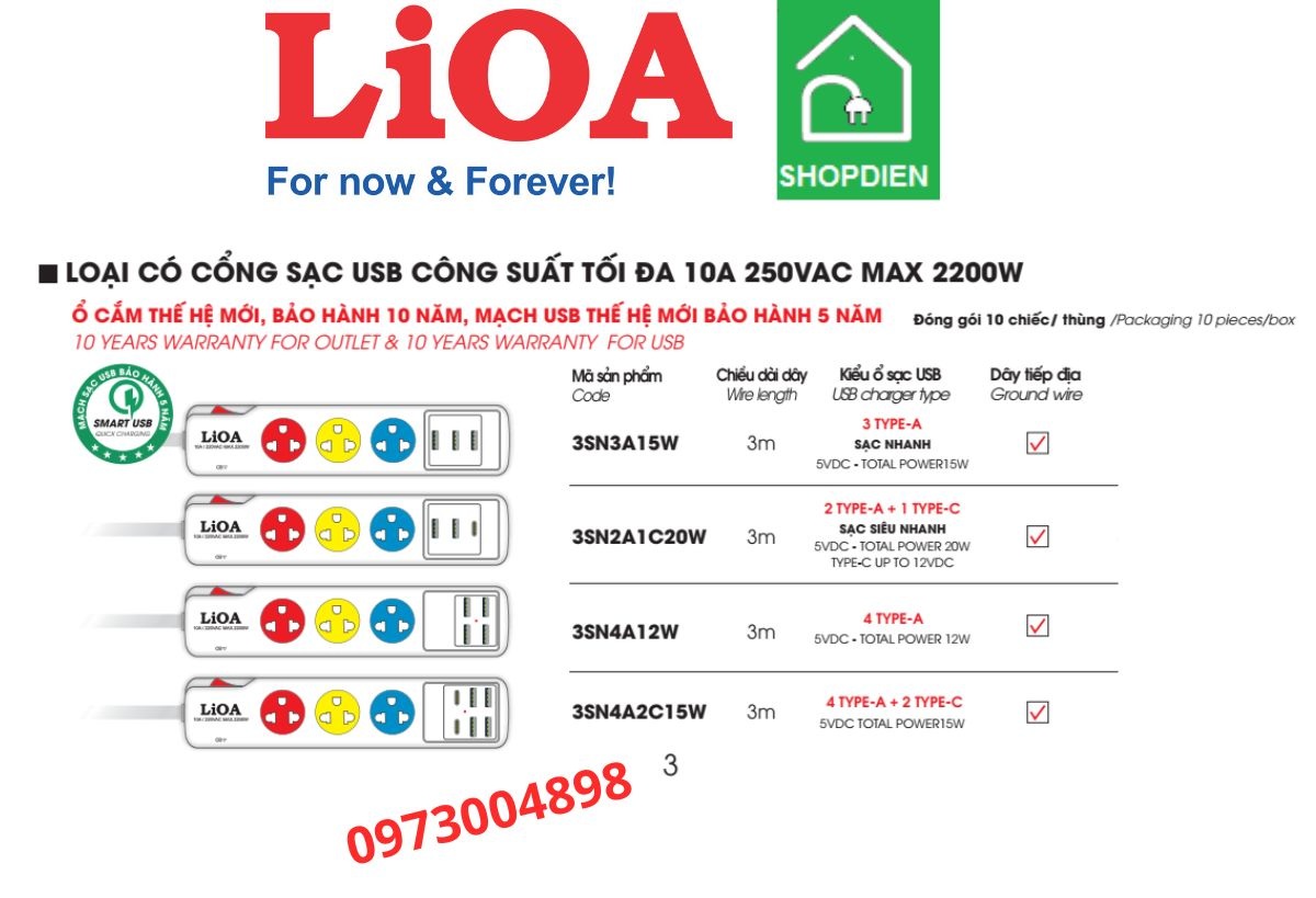 Ổ cắm kéo dài LIOA 3SN4A12W phù hợp sử dụng cho tivi, quạt điện, máy tính, nồi cơm, thiết bị âm thanh và các thiết bị gia dụng khác. Bốn cổng USB sạc nhanh giúp người dùng sạc smartphone, tablet mà không cần củ sạc rời.