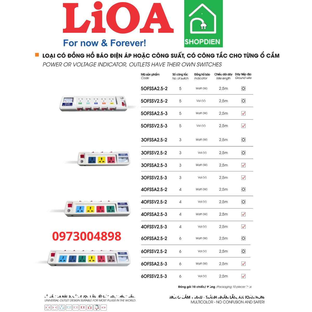 5OFSSA2.5-2 LIOA Ổ cắm kéo dài 5 cổng có công tắc và đồng hồ W của LIOA là sản phẩm tiện ích, giúp cấp điện an toàn và kiểm soát điện áp sử dụng một cách trực quan. Thiết kế gồm 5 ổ cắm đa năng, công tắc cho từng ổ cắm kết hợp đồng hồ báo công suất giúp người dùng dễ dàng theo dõi mức công suất tiêu thụ W, bảo vệ thiết bị điện khỏi nguy cơ hư hại do điện áp bất thường.