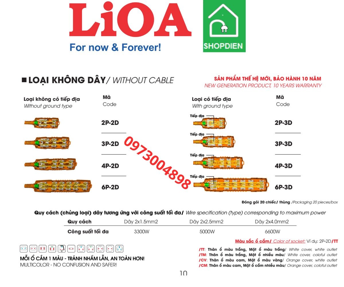 Ổ cắm kéo dài 6P-3D của LIOA thích hợp sử dụng cho các thiết bị điện công suất vừa và nhỏ như quạt điện, nồi cơm điện, máy sấy tóc, tivi, máy tính, sạc điện thoại, loa… Nhờ thiết kế không dây, sản phẩm giúp tiết kiệm không gian, hạn chế rối dây và mang lại sự gọn gàng cho khu vực làm việc hoặc sinh hoạt.
