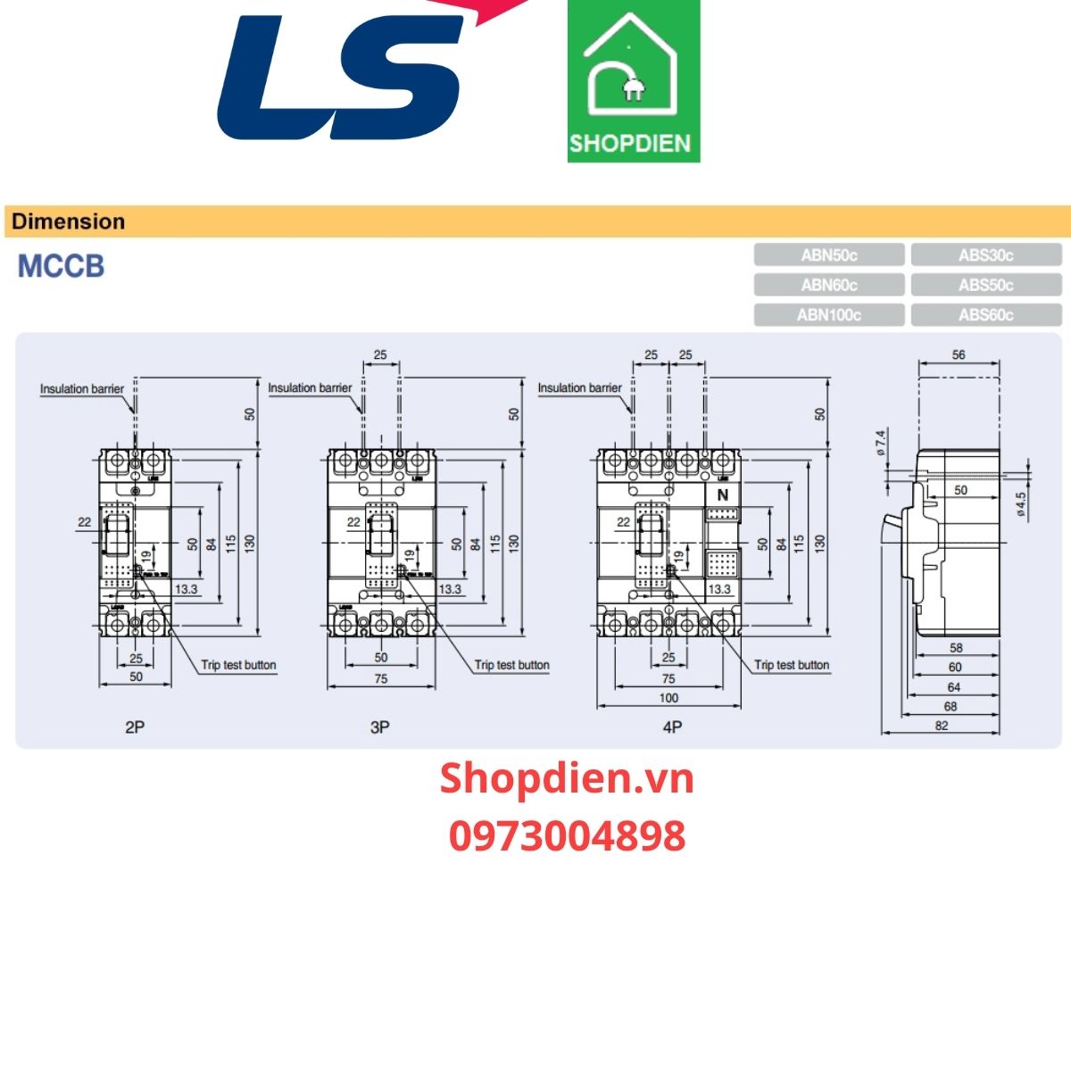 TÊN SẢN PHẨM: ABN104C LS MCCB 4P 75A 22kA Aptomat Cầu dao tự động