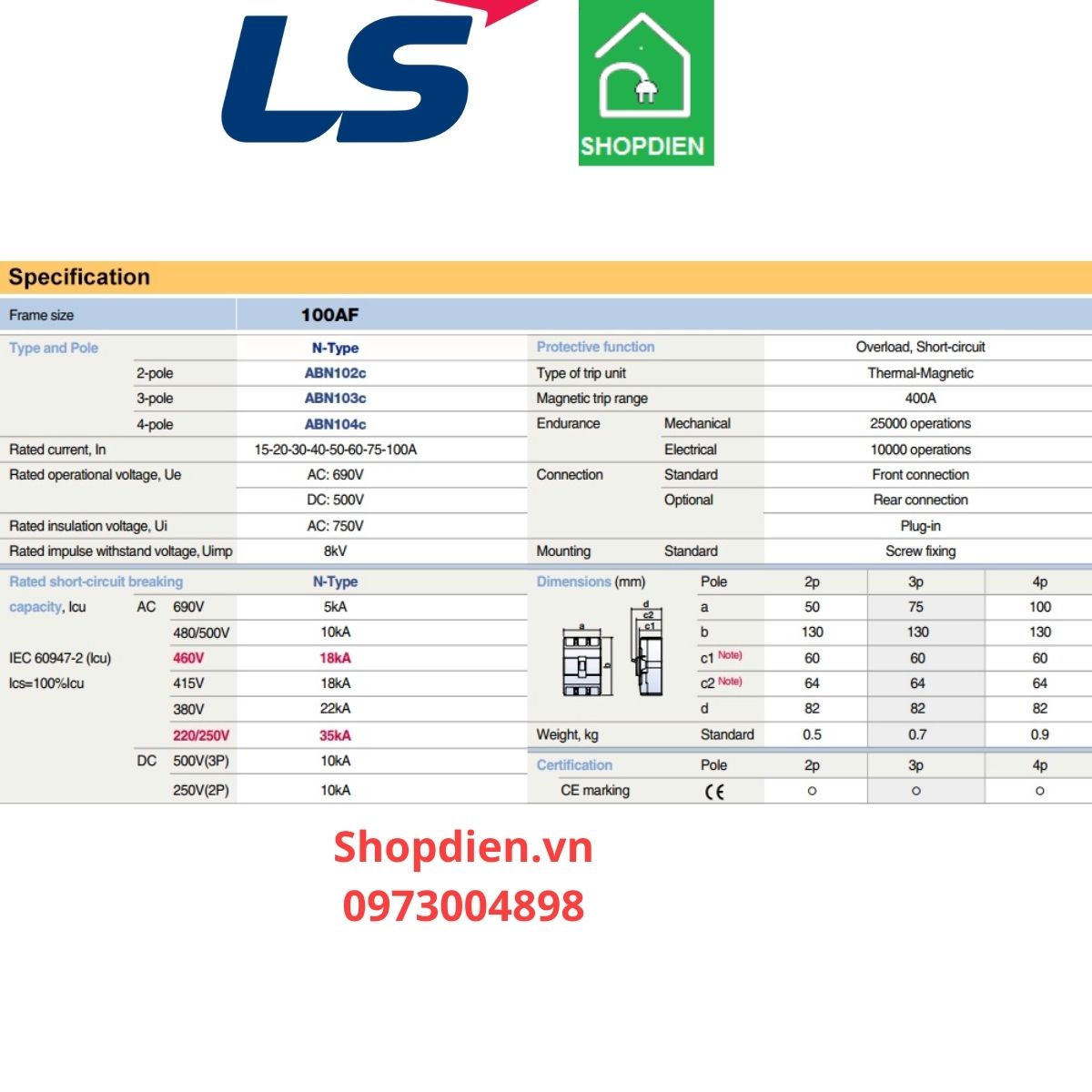 Mã hàng : ABN104C 4P 75A