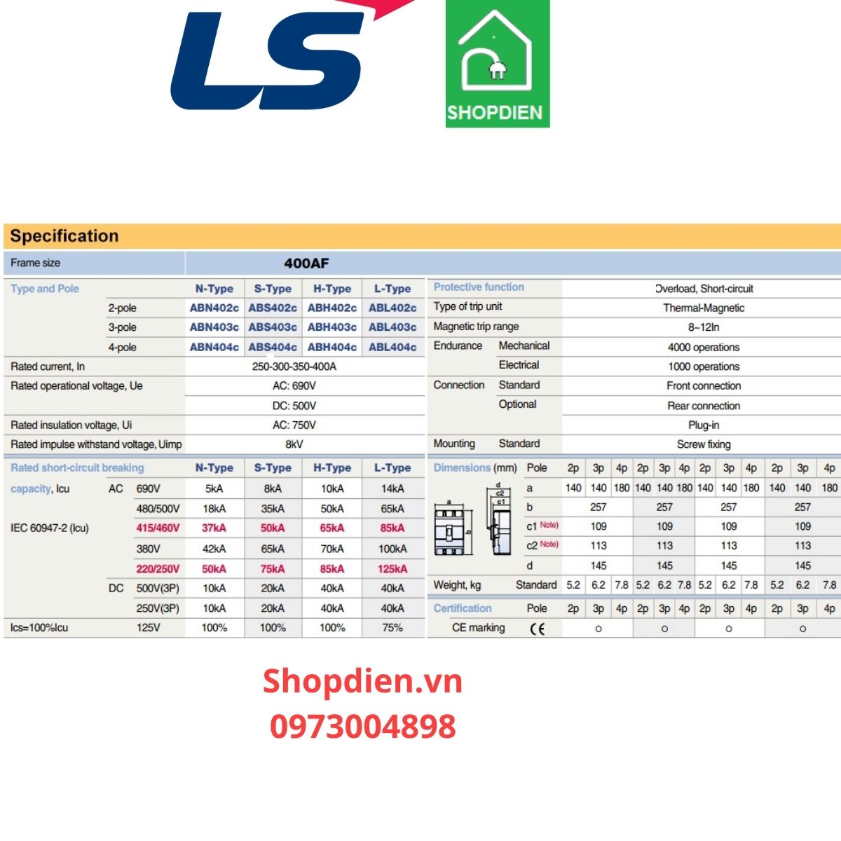 TÊN SẢN PHẨM: ABN403C LS MCCB 3P 250A 42KA Aptomat Cầu dao tự động