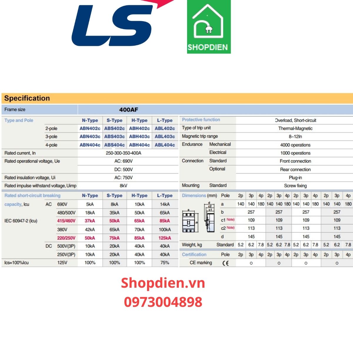 TÊN SẢN PHẨM: ABN404C LS MCCB 4P 350A 42KA Aptomat Cầu dao tự động