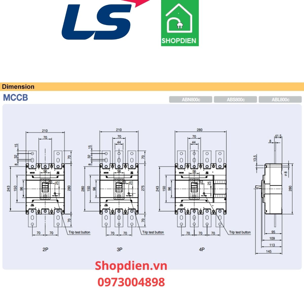 TÊN SẢN PHẨM: ABS804C LS MCCB 4P 800A 75KA Aptomat Cầu dao tự động
