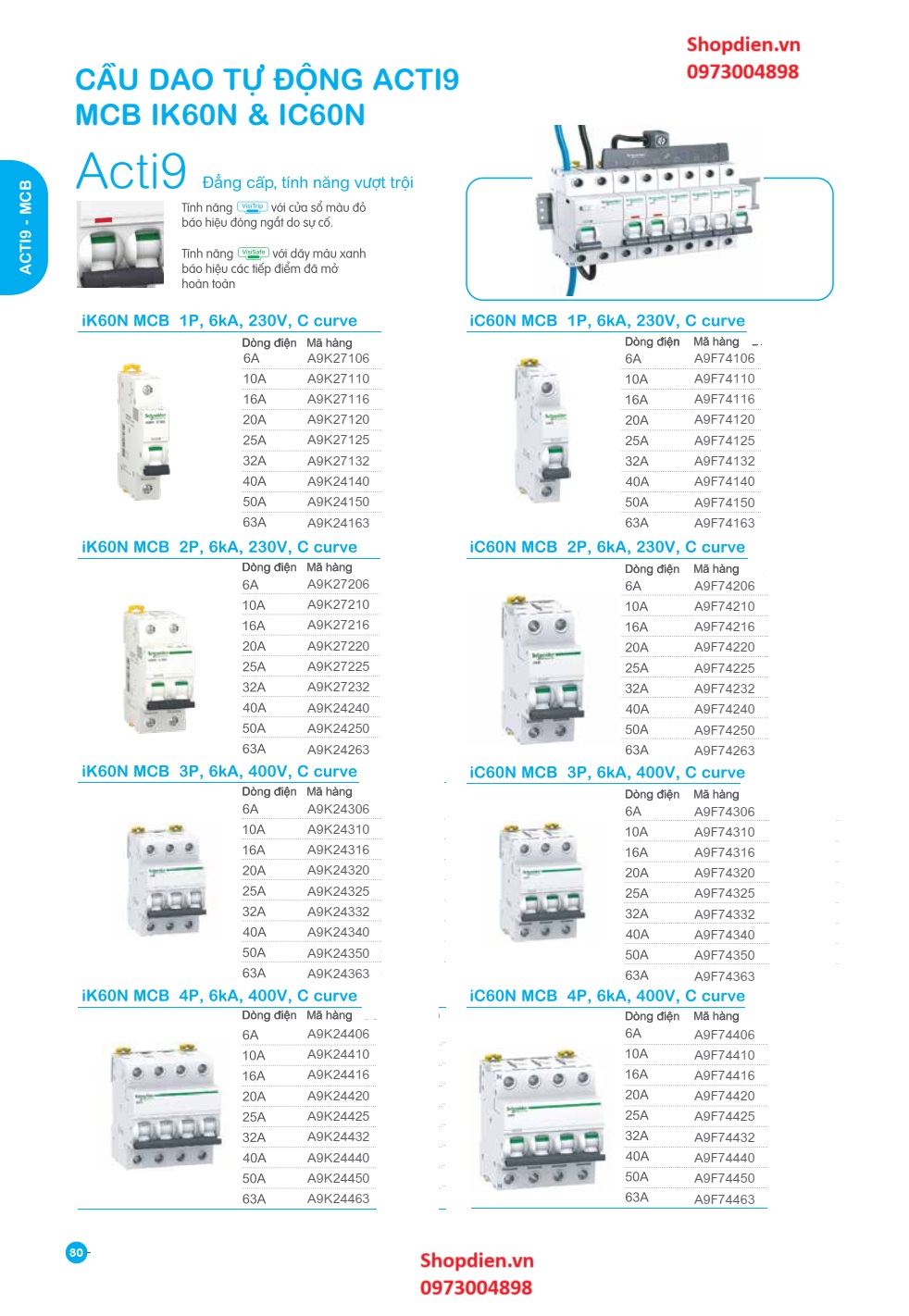 Catalogue Thiết bị đóng cắt Aptomat MCB Acti9 Schneider