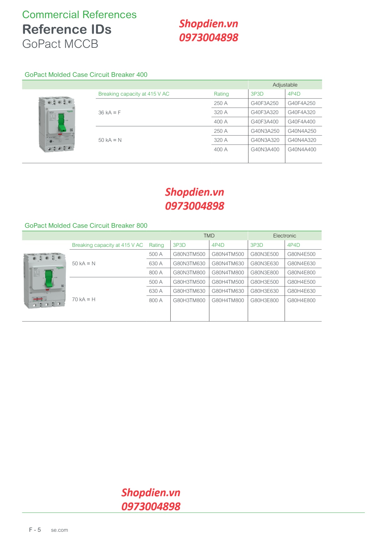 Catalogue Aptomat Cầu dao tự động MCCB 4P 500A 70kA G80H4TM500 Gopact 800H