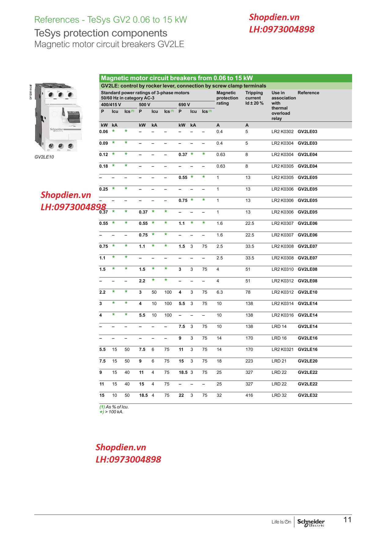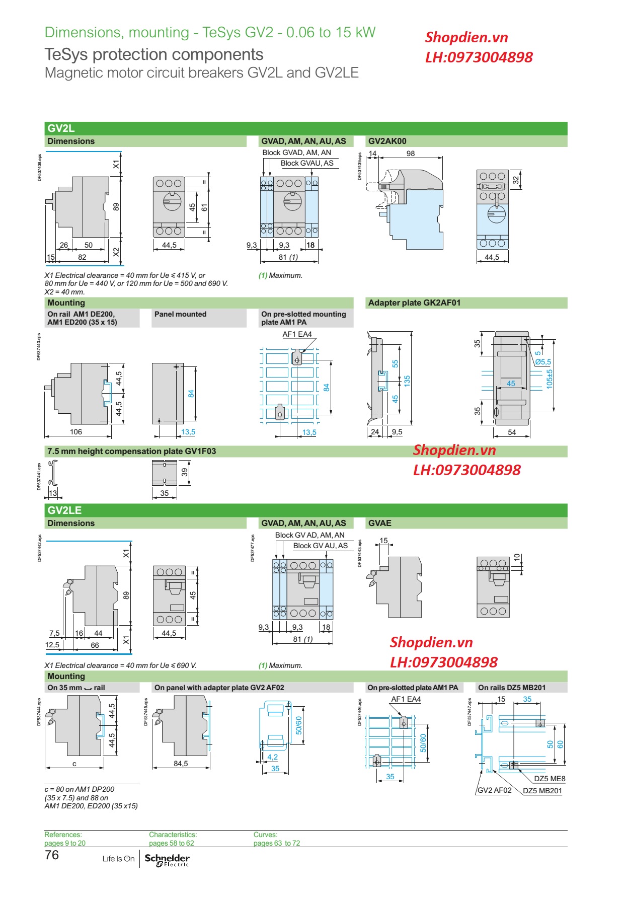 Tên sản phẩm : Aptomat CB bảo vệ động cơ loại từ Schneider GV2LE05