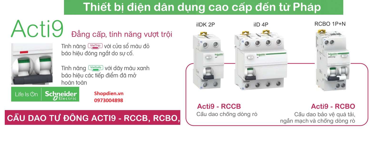 Quý khách hàng có nhu cầu tư vấn sử dụng Aptomat chống giật, rò điện RCCB 2P 25A 30mA A9R50225 ACTI9 của Schneider electric vui lòng liên hệ với www.shopdien.vn hoặc hotline 0973004898.