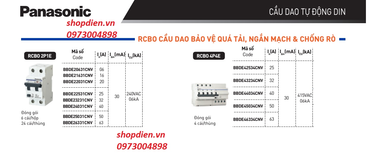 Quý khách hàng có nhu cầu tư vấn sử dụng Cầu dao chống rò RCBO 4P 50A BBDE45034CNV của Panasonic vui lòng liên hệ với www.shopdien.vn hoặc hotline 0973004898.
