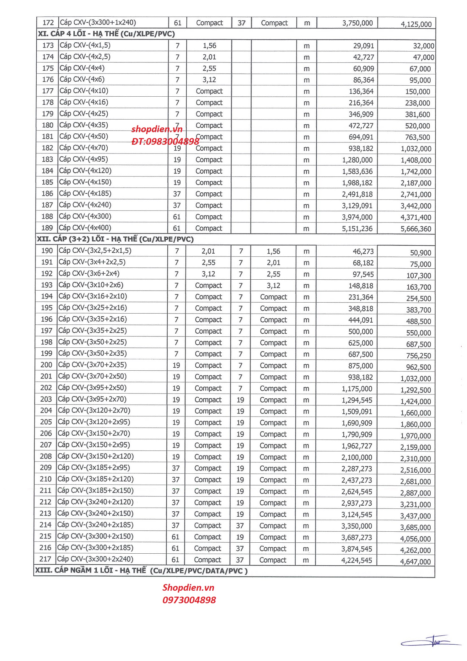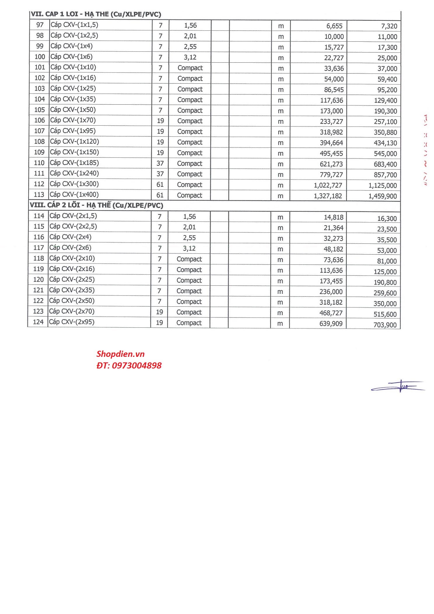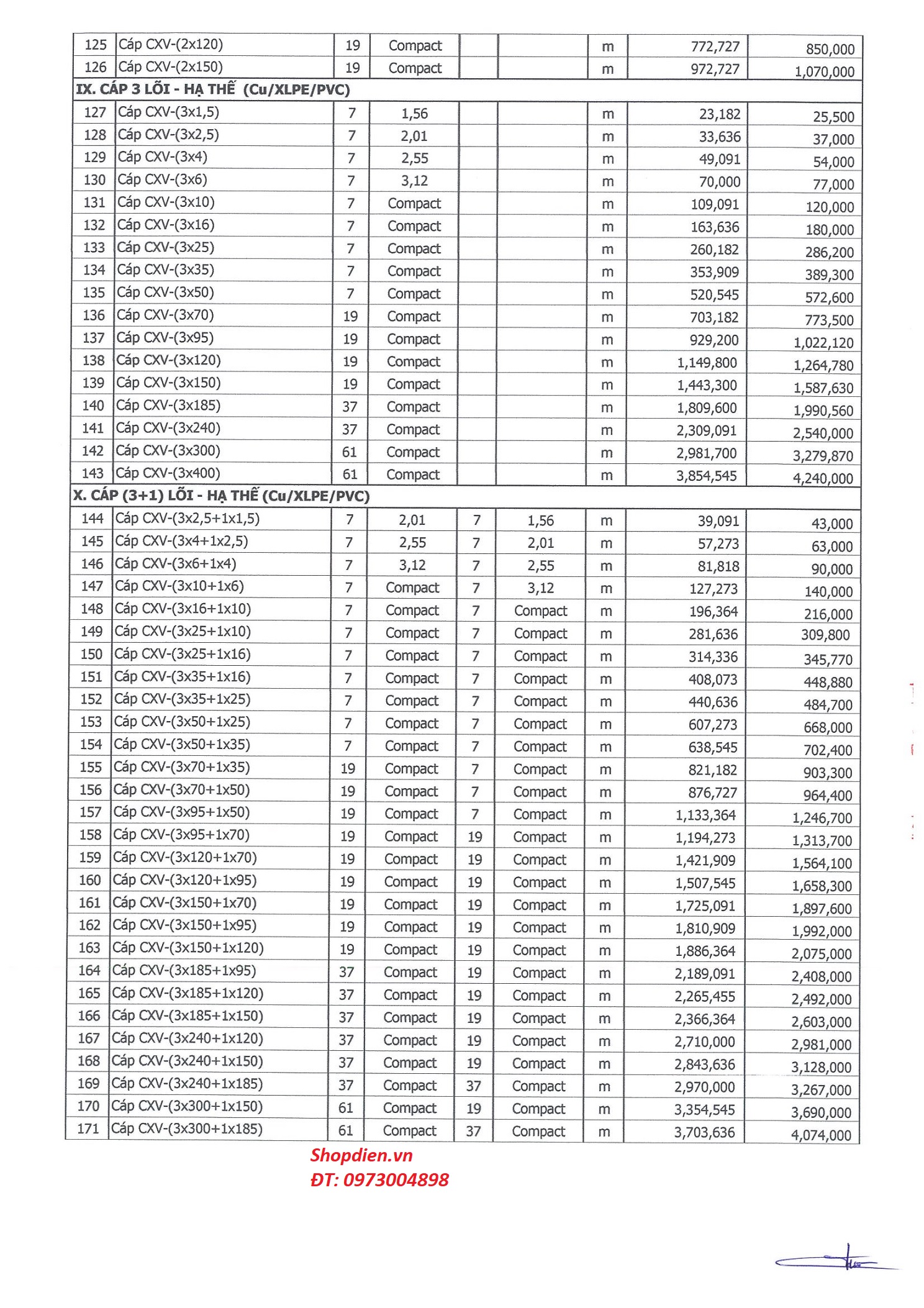 Mã sàn phẩm : Cáp treo ngoài trời Cu/XLPE/PVC (CXV) Trần Phú