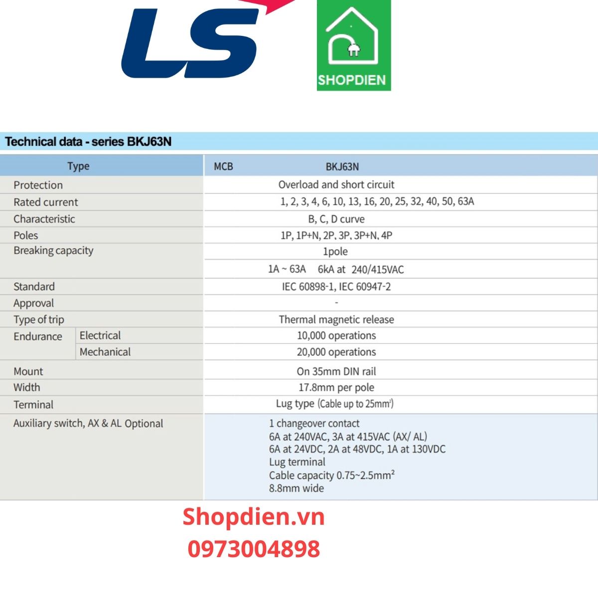 TÊN SẢN PHẨM: BKJ63N LS MCB 1P 40A 6KA Aptomat Cầu dao tự động