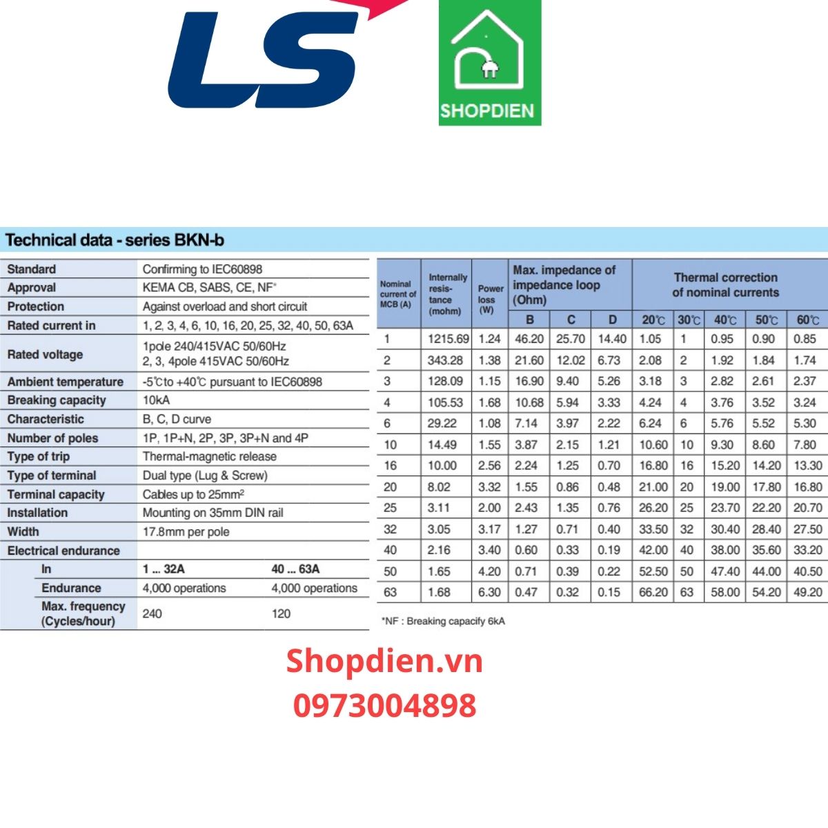 TÊN SẢN PHẨM: BKN-b LS MCB 1P 25A 10kA Aptomat Cầu dao tự động
