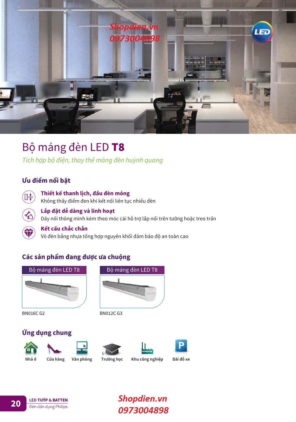 Ứng dụng : Nhà ở, Cửa hàng, Văn phòng, Trường học và Nhà máy công nghiệp