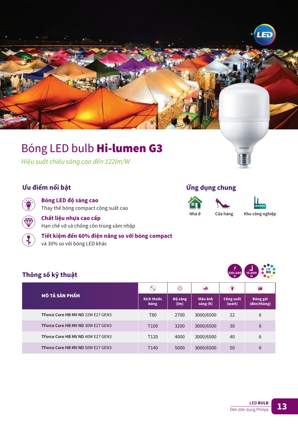 Tên sản phẩm : Bóng đèn LEDBulb trụ Hi-lumen 30W đui xoáy E27 TForce Core HB MV ND Philips