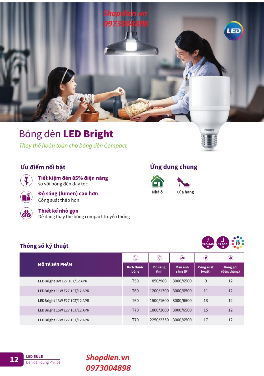 Mã hàng : LEDBright 11W E27 1CT/12 APR