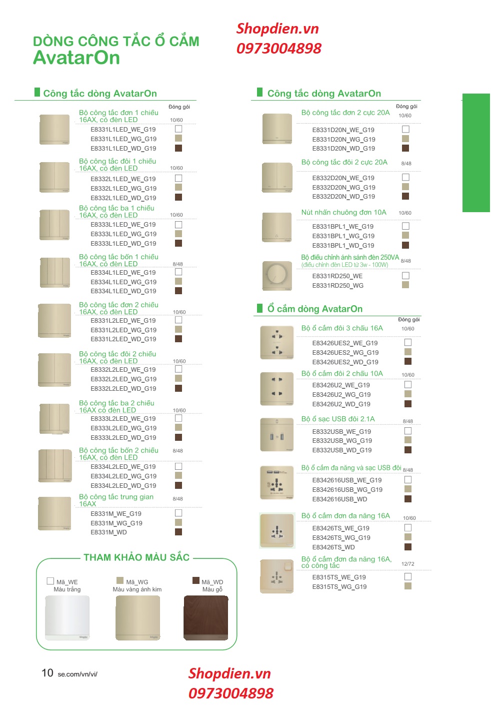 Catalogue Công tắc ổ cắm AvatarON Schneider Electric