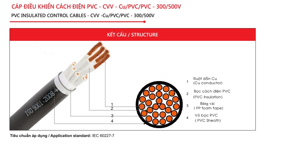 - Kết cấu ruột dẫn: Bện xoắn nhiều sợi cấp 5