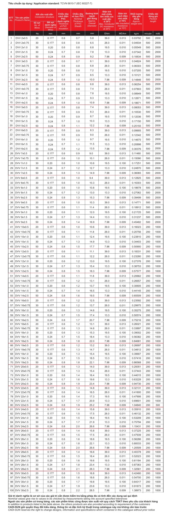 'Tên sản phẩm: Cáp điều khiển cu/pvc/pvc 10x2.5 mm2 Control cable Cadisun DVV