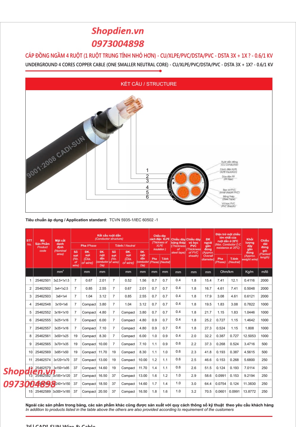Mã sàn phẩm : Cáp ngầm 4 ruột Cu / XLPE/DSTA/PVC CADISUN CXV-DSTA 4X