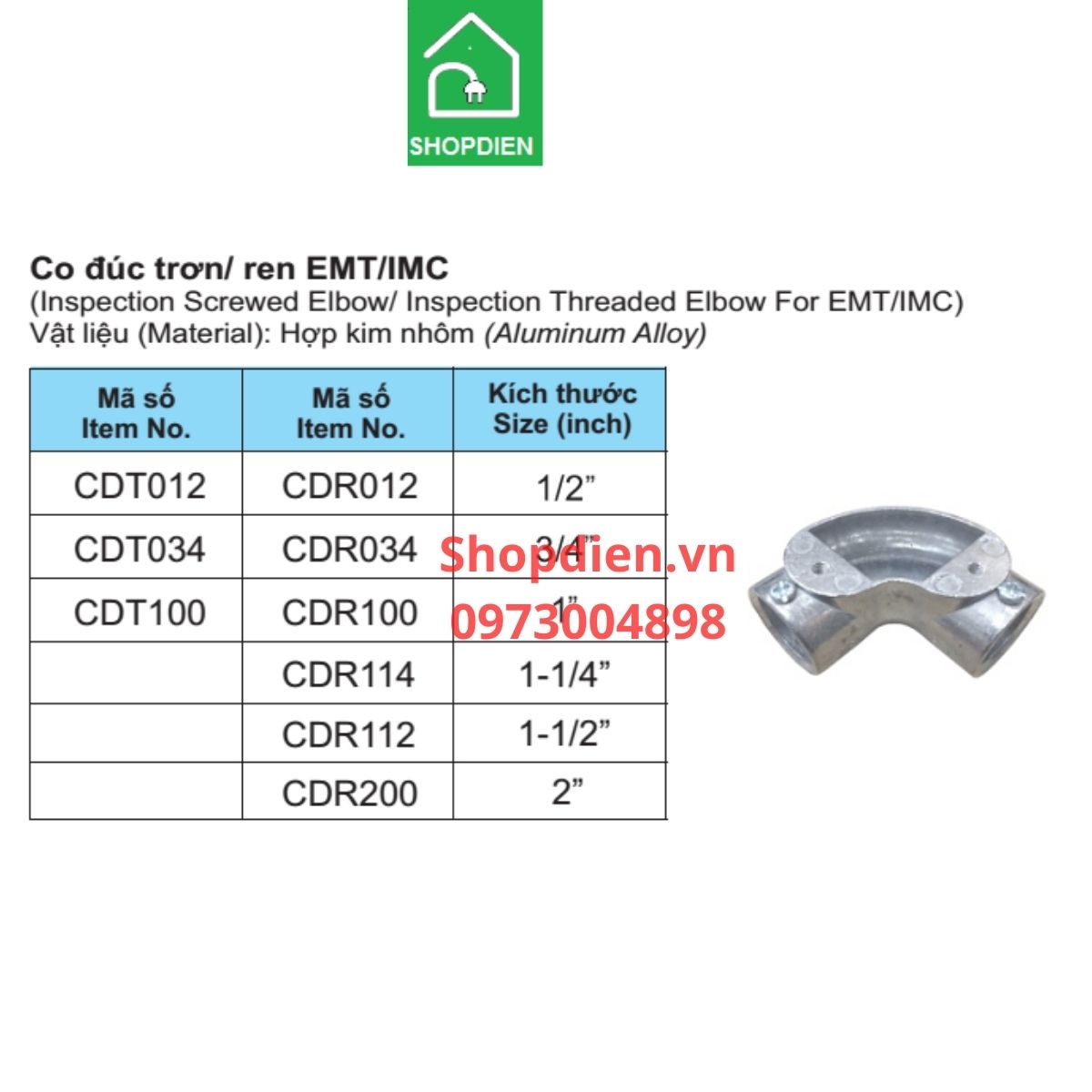 Tên Sản phẩm : Cút góc chữ L / Co góc L cho ống thép 1/2" D16 Inspection Elbow for steel conduits-CDL - 1/2"