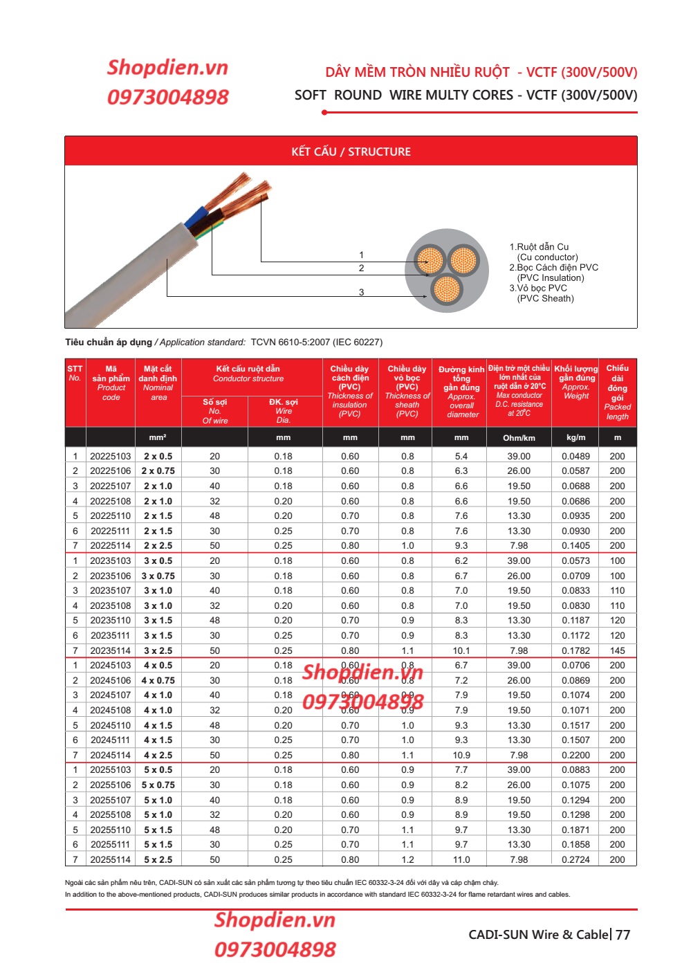 Cách điện : Cu/PVC/PVC