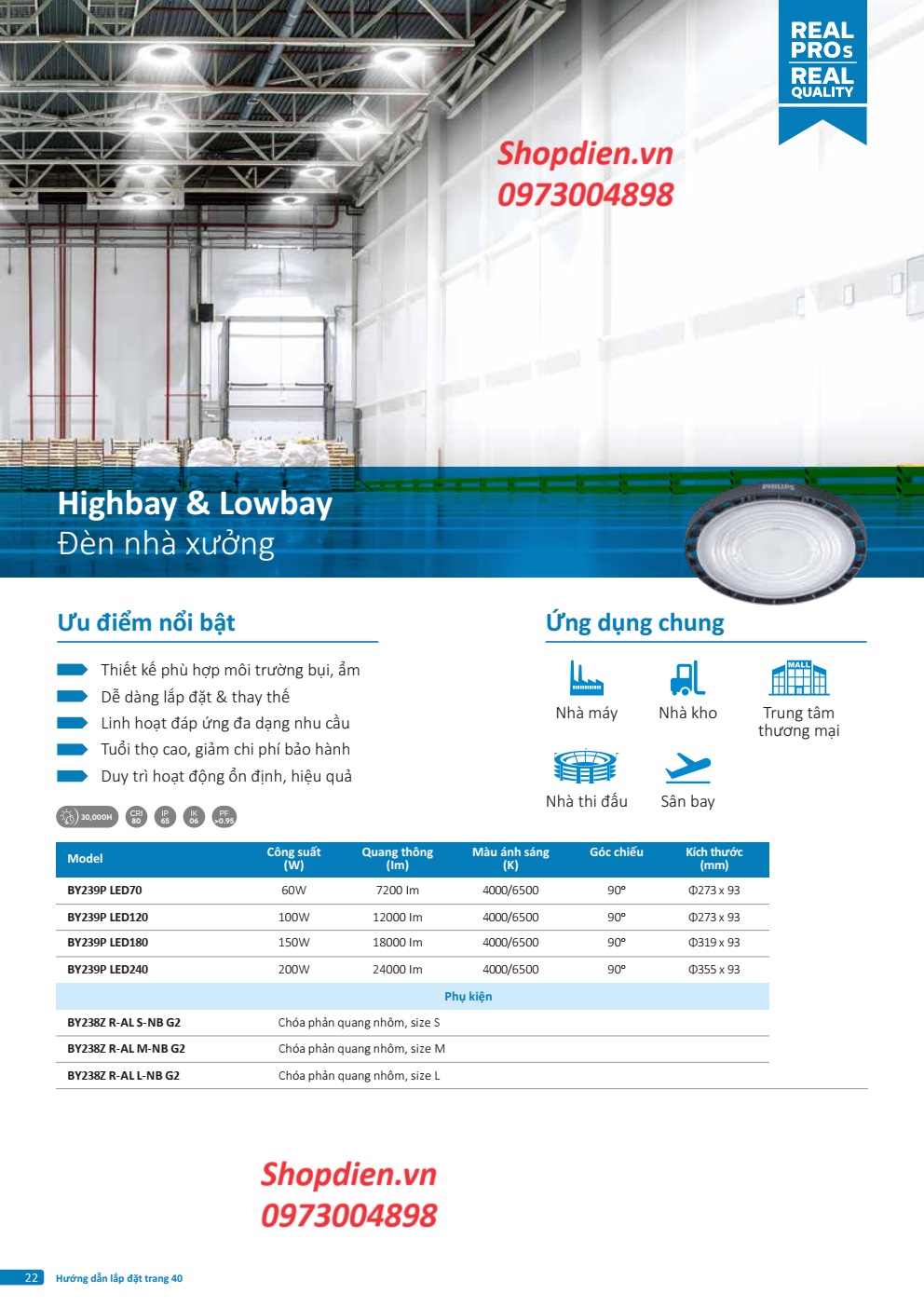Ứng dụng: Nhà xưởng, Cửa hàng, khách sạn...