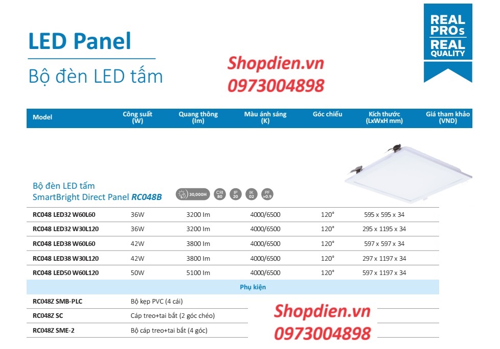 Tên sản phẩm : Đèn led panel âm trần Philips 600x600 36W RC048B LED32S/865 PSU W60L60 NOC GM as trắng 6500k