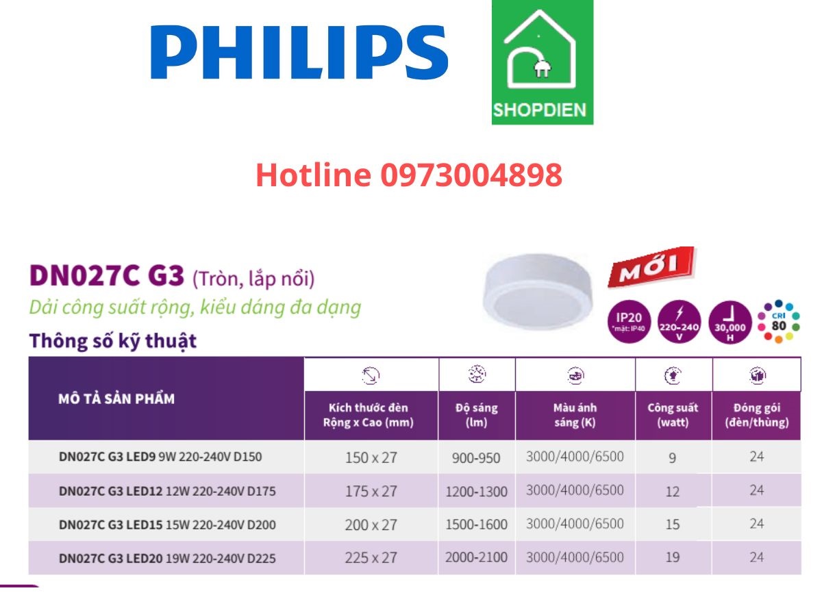 Quý khách hàng có nhu cầu tư vấn sử dụng Đèn ốp nổi trần 12W D175 Philips DN027C G3 LED12 vui lòng liên hệ với www.shopdien.vn hoặc hotline 0973004898.
