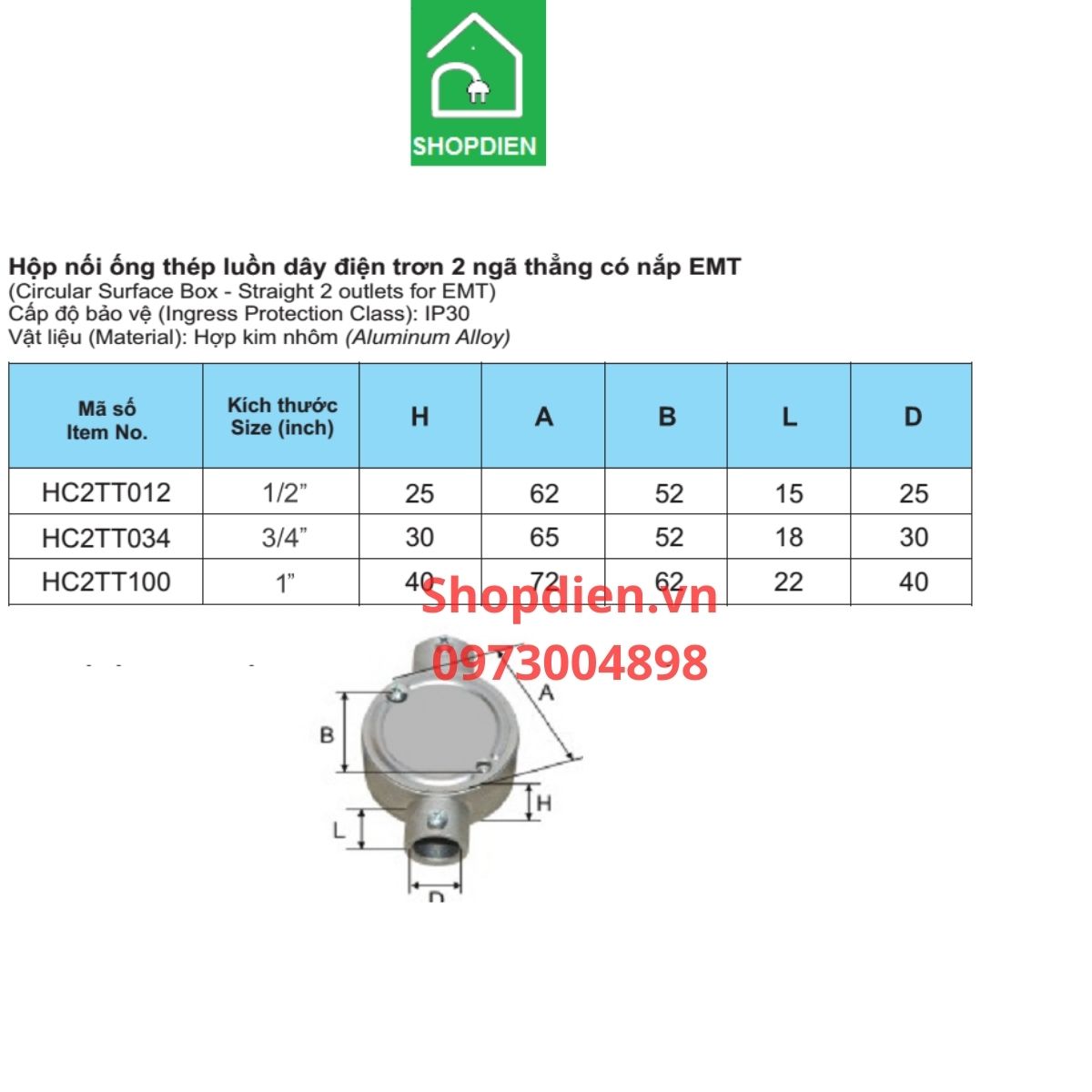 Tên Sản phẩm : Hộp chia 2 ngả thẳng cho ống thép 3/4" D20 Circular surface junction box-HC2TT - 3/4"