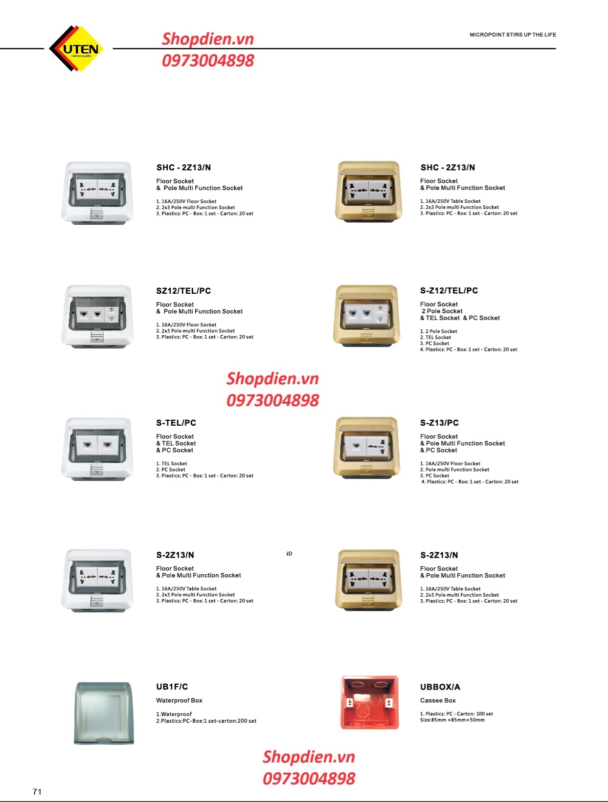 Tên sản phẩm : Ổ cắm đôi 3 chân âm sàn màu bạc duplex Floor socket UTEN S-2Z13/N