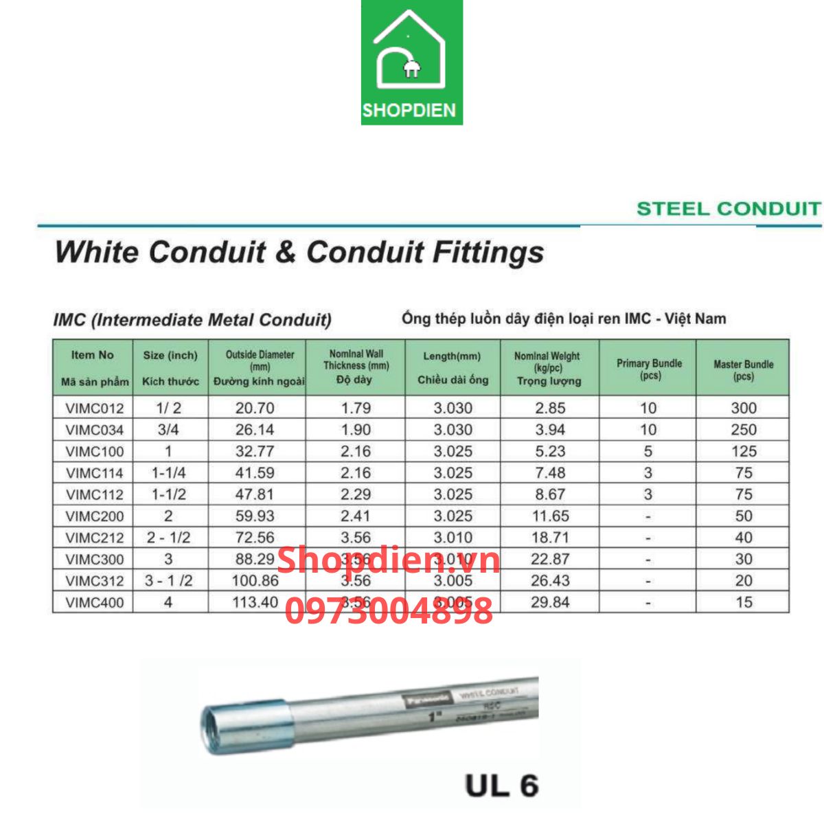 'Tên sản phẩm: Ống thép luồn dây điện loại ren 1-1/4" - D41 / Steel conduit-DWM114