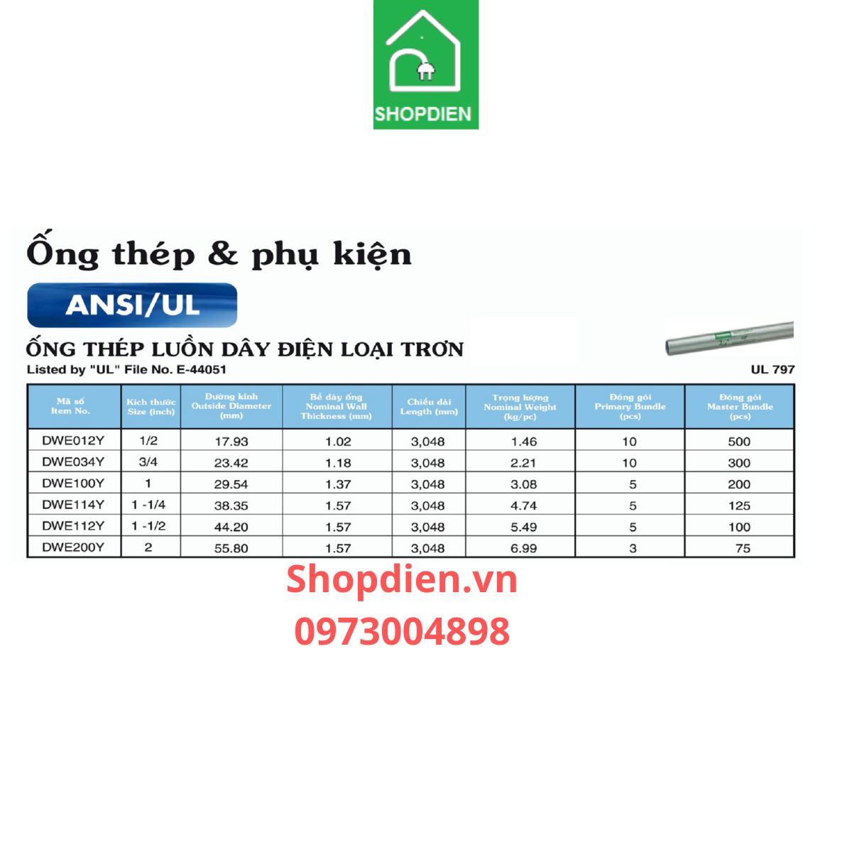 'Tên sản phẩm: Ống thép luồn dây điện loại trơn 1-1/4" - D38 / Steel conduit-DWE114