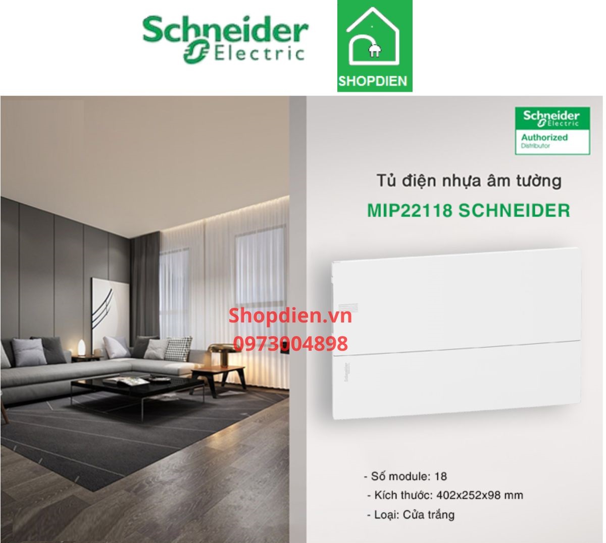Quý khách hàng có nhu cầu tư vấn sử dụng Tủ điện âm tường 8 Modules MIP22118 Schneider của Schneider electric vui lòng liên hệ với www.shopdien.vn hoặc hotline 0973004898.