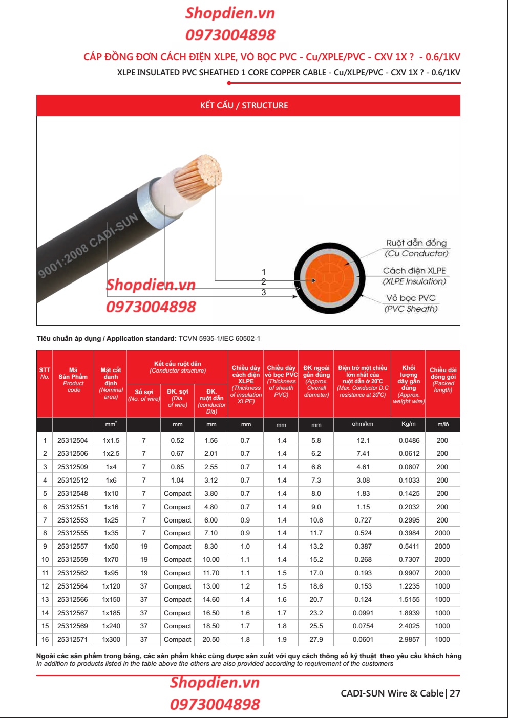 Catalogue : Cáp CXV Cu/xlpe/pvc của Cadisun