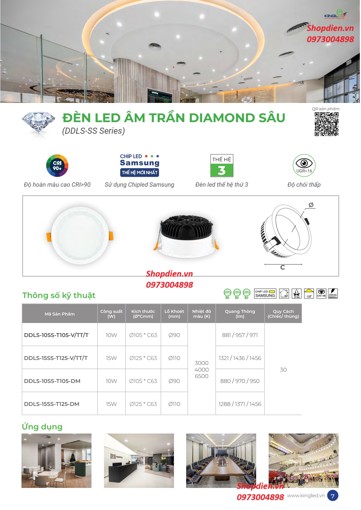 Catalogue : DDLS-15SS-T125 KINGLED Đèn downlight âm trần 15W D125 DIAMOND chiếu sâu