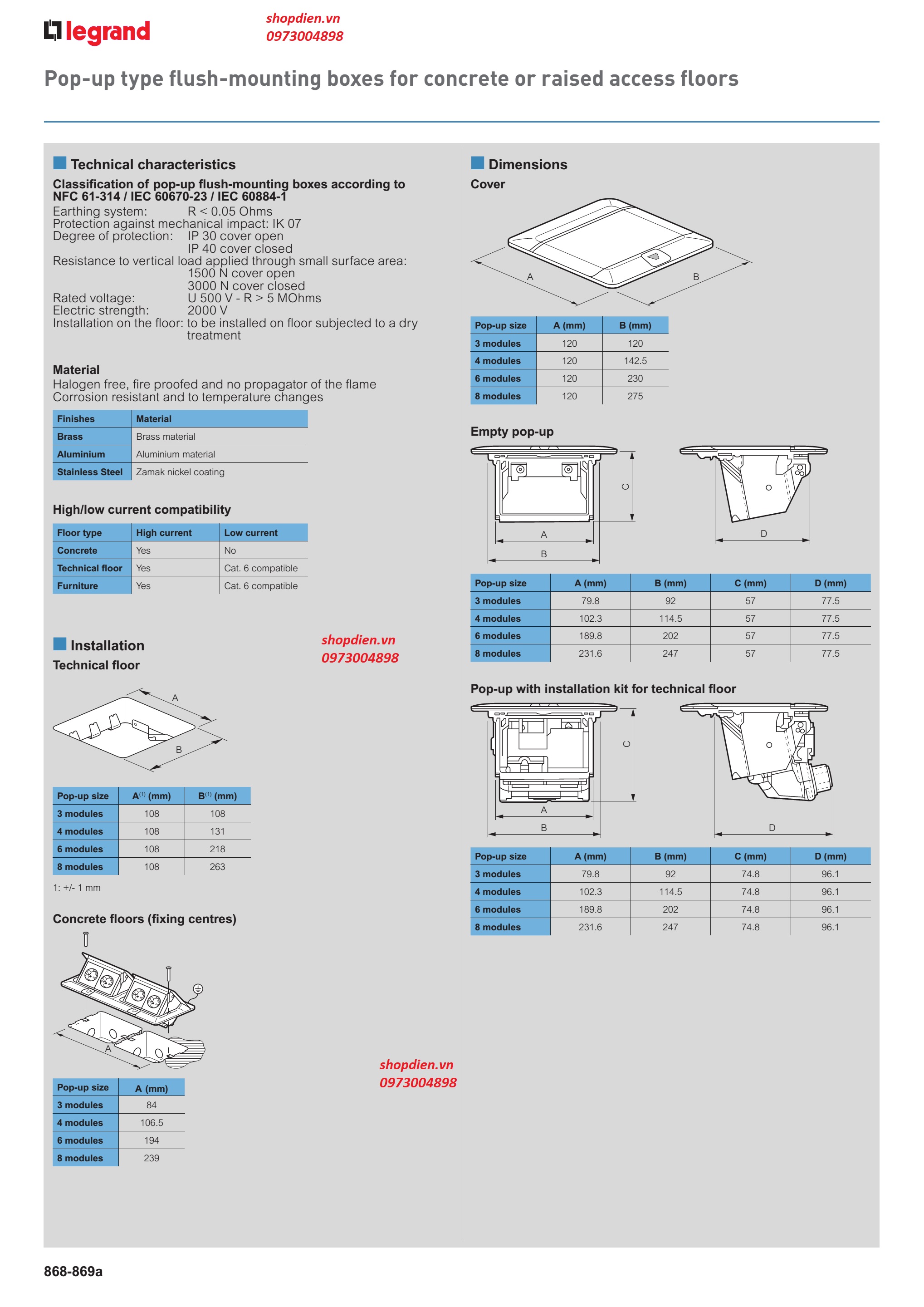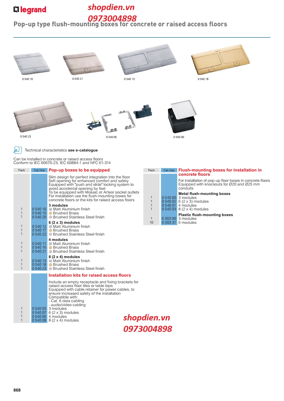 Tên sản phẩm : Đế kim loại cho ổ cắm âm sàn 6M Floor socket Legrand-054002