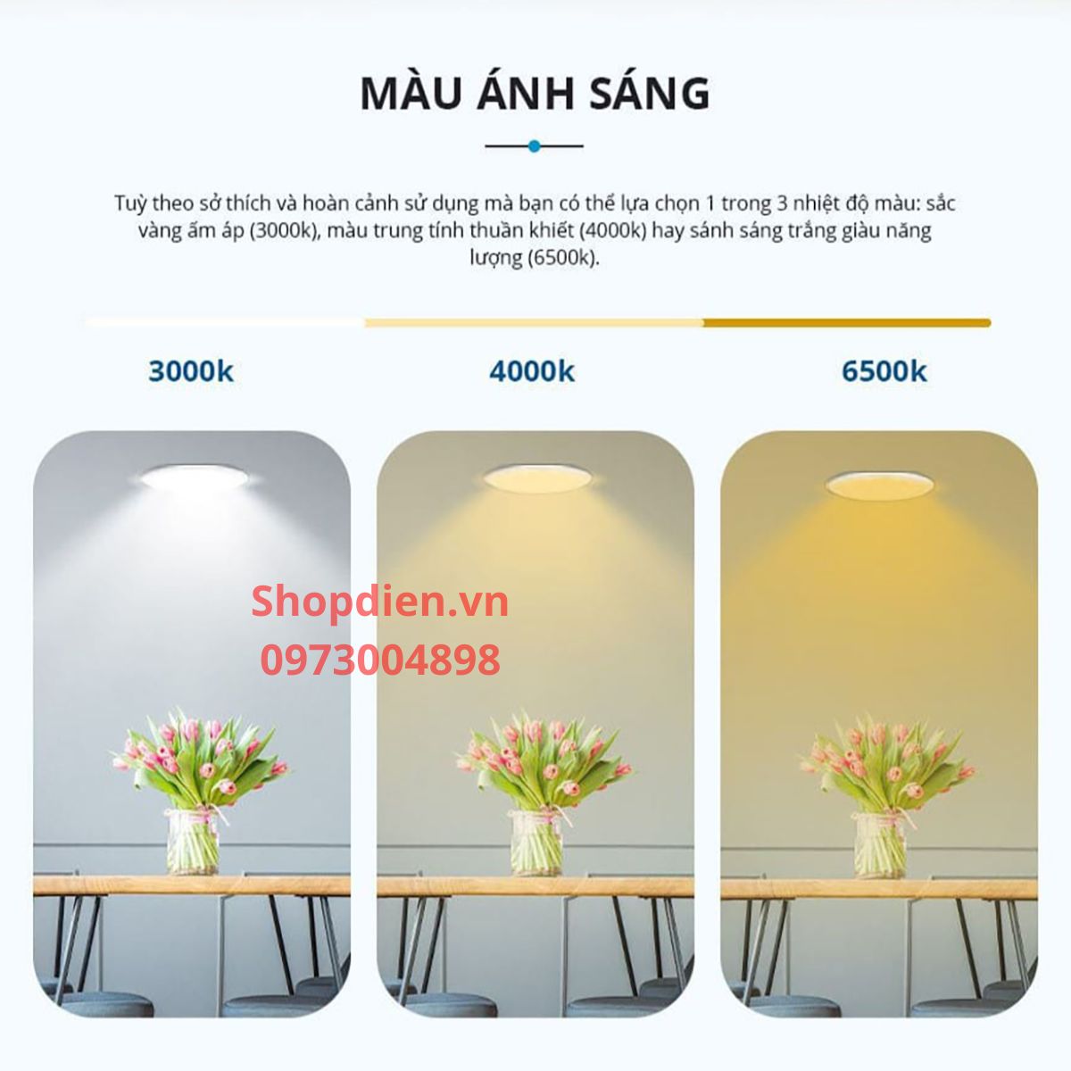 MÀU ÁNH SÁNG : Ánh sáng vàng 3000k