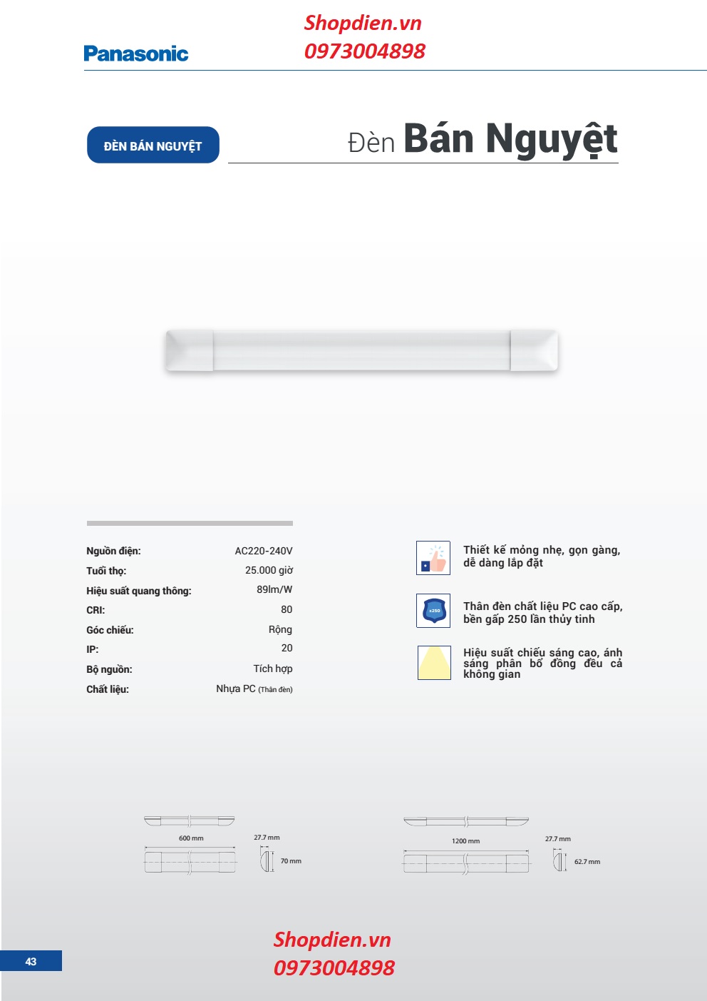 HIỆU SUẤT ÁNH SÁNG : 89 Lm/m