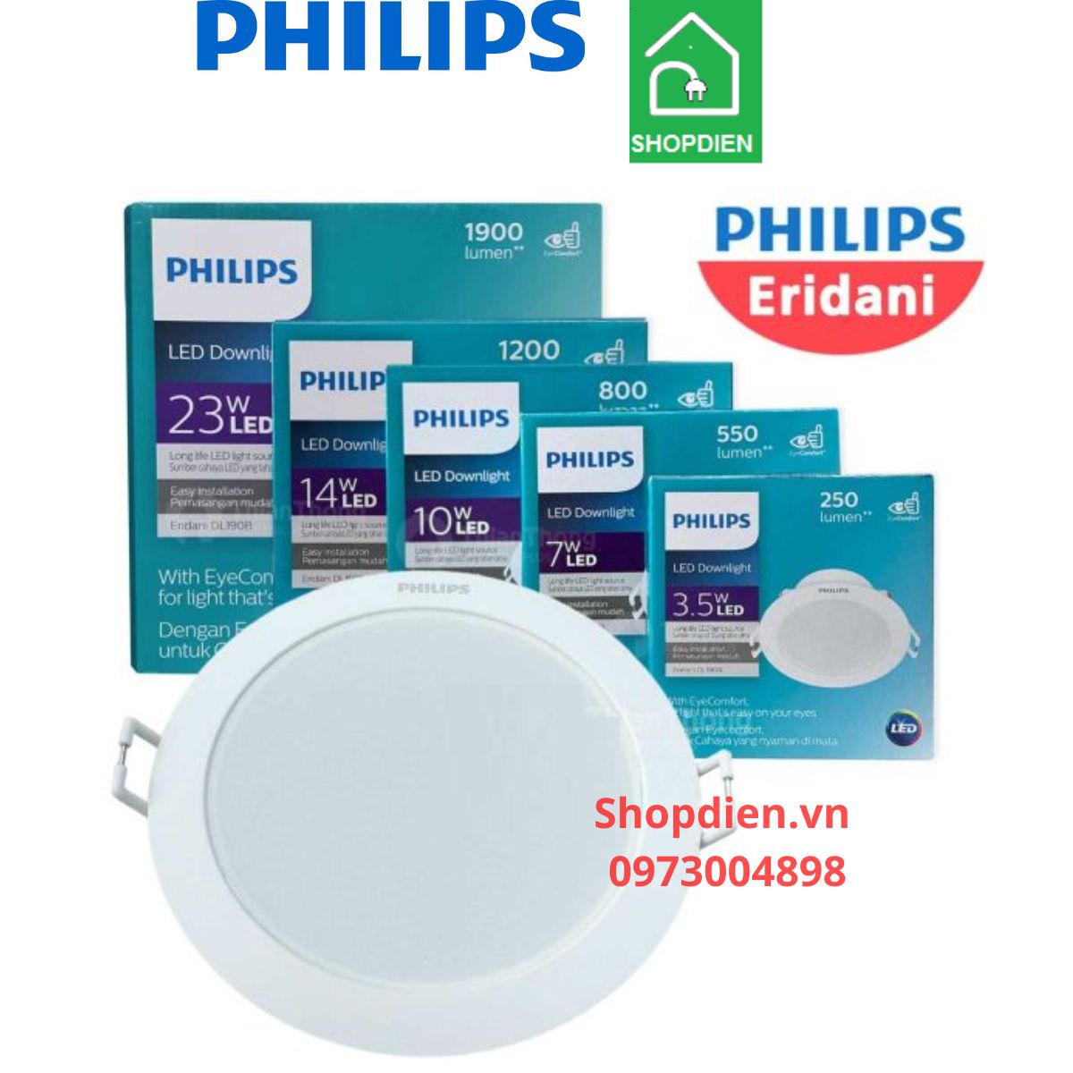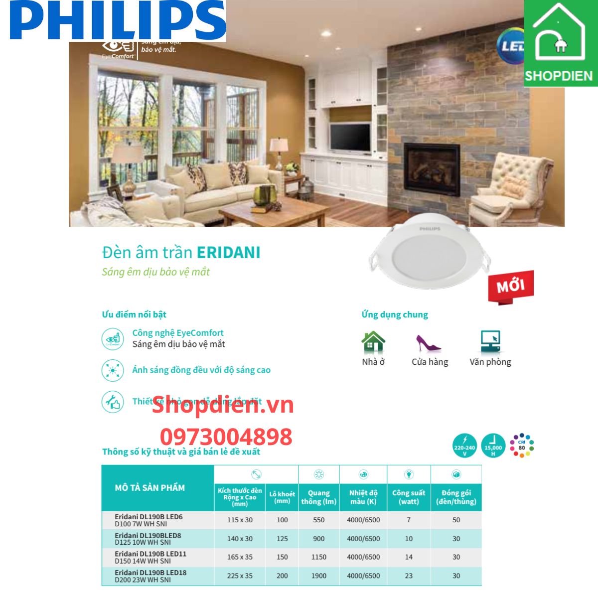 Quý khách hàng có nhu cầu tư vấn sử dụng Đèn downlight âm trần 14W D150 Philips Eridani DL190B LED11 WH SNI vui lòng liên hệ với www.shopdien.vn hoặc hotline 0973004898.