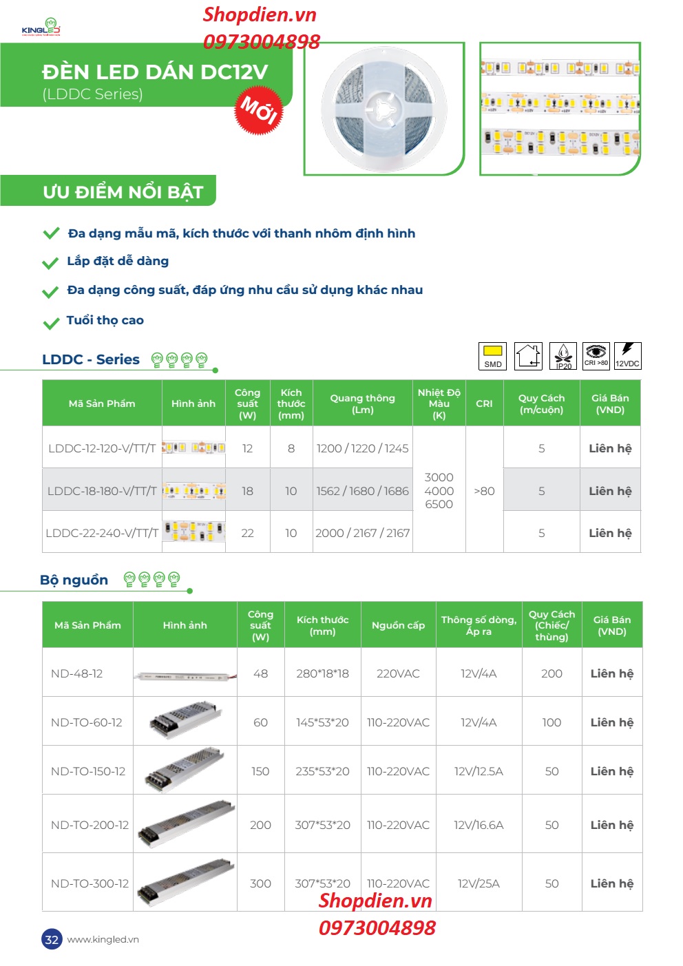 TÊN SẢN PHẨM : Đèn Led dây dán 12W 12VDC (1 cuộn=5m) KINGLED LDDC-12-120-V/TT/T