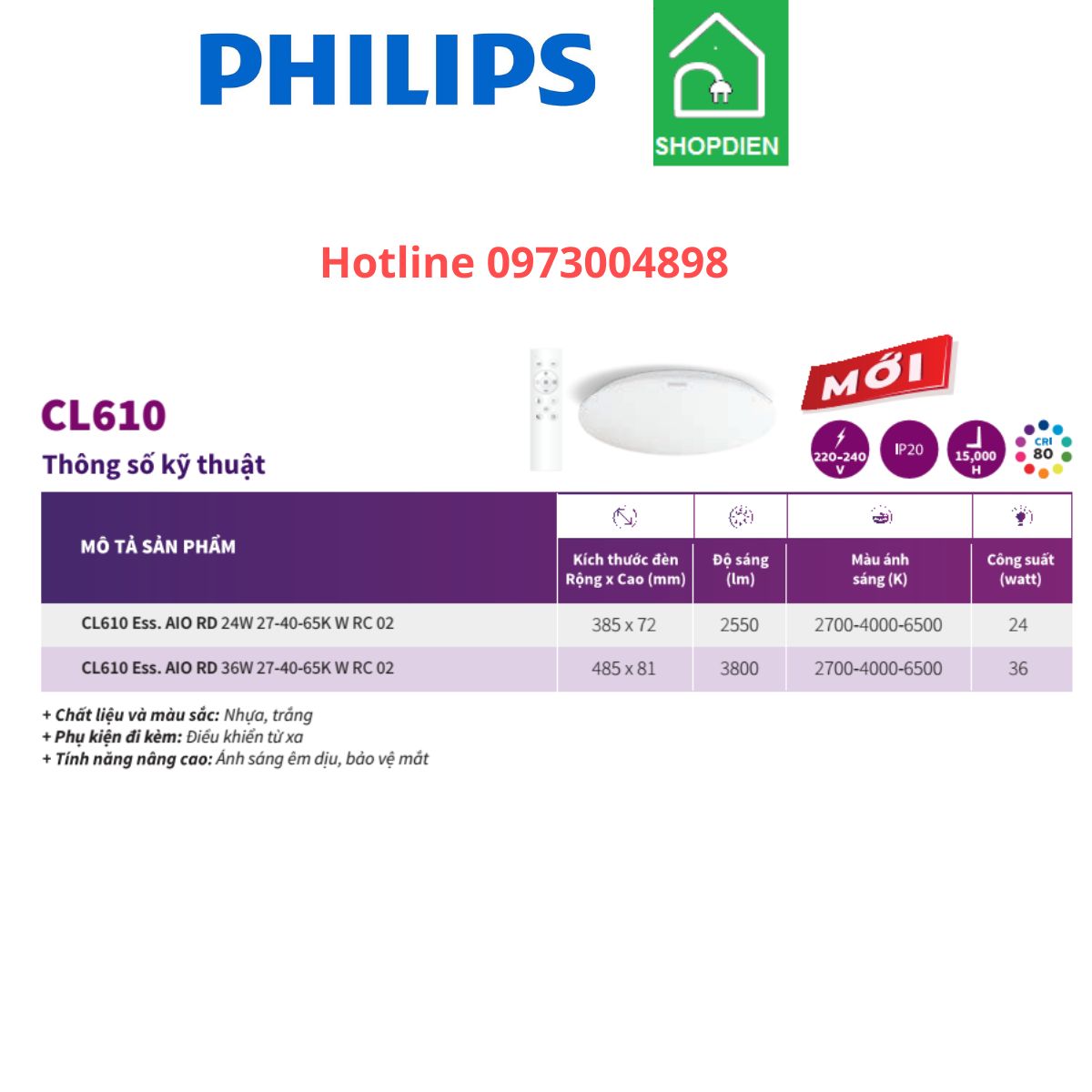 Mã sản phẩm: Philips-CL610 Ess AIO RD 36W 27-40-65k RD 02