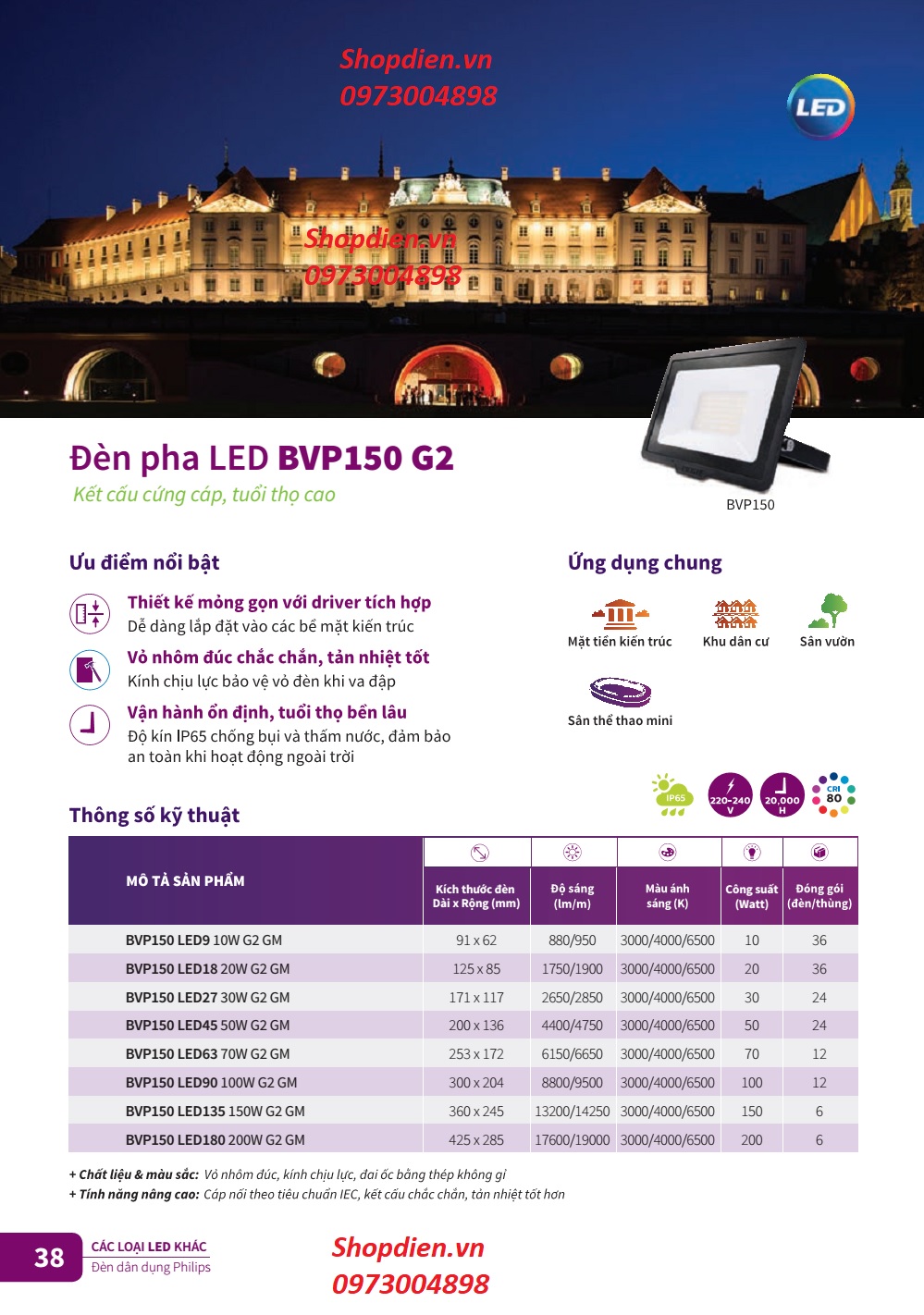 Tên sản phẩm :Đèn pha LED ngoài trời 10W BVP150 LED9 G2 philips