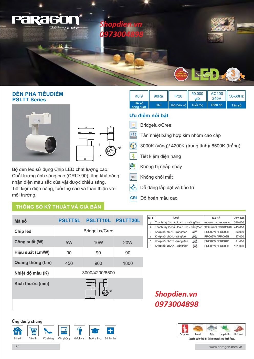 TÊN SẢN PHẨM : Đèn rọi tiêu điểm đế ngồi tròn LED Track Light 5W Paragon PSLTT5L/C