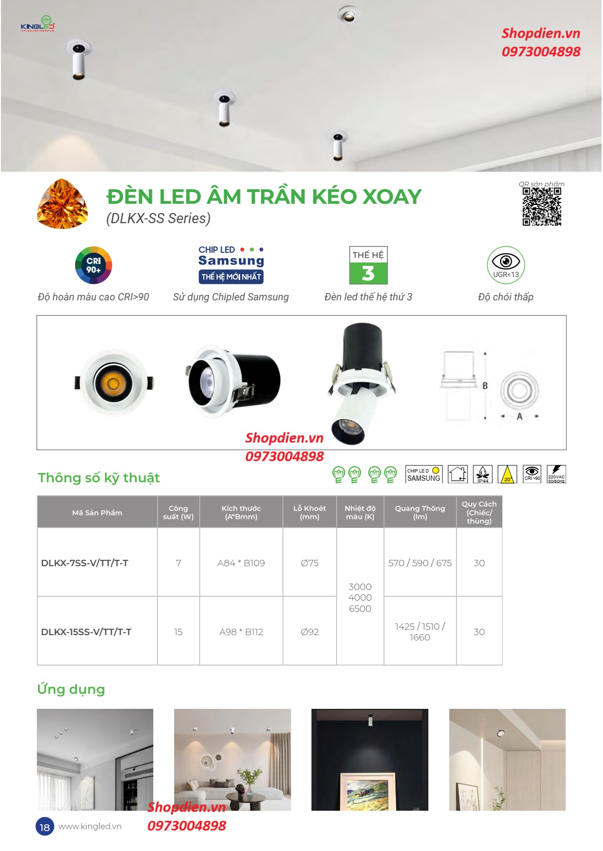 Catalogue : DLKX-7SS KINGLED Đèn kéo xoay 7W D75 thò thụt âm trần