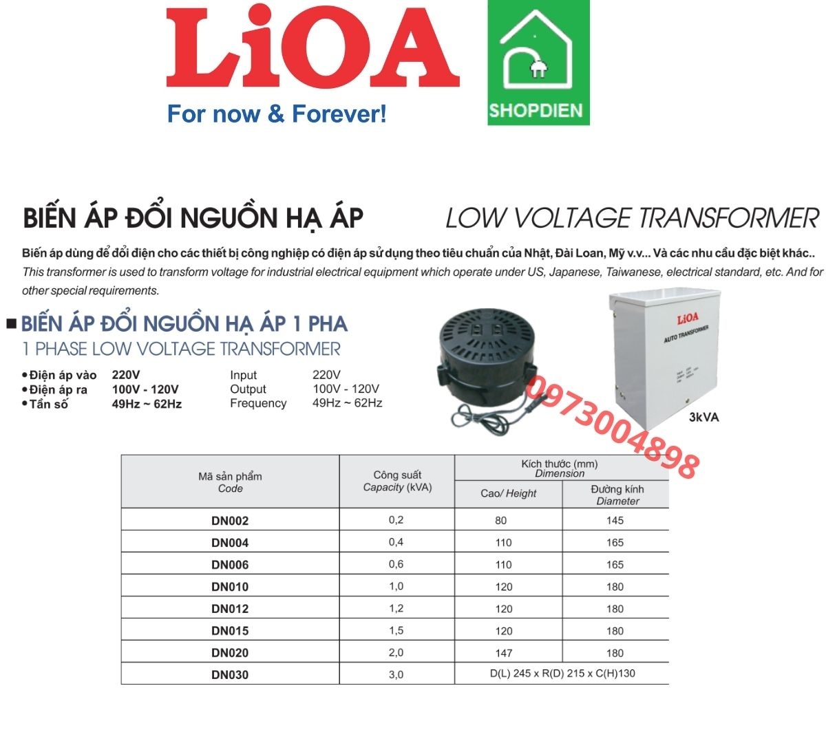 DN015 LIOA Biến áp đổi nguồn hạ áp 1,5KVA của Lioa là thiết bị chuyên dụng giúp chuyển đổi điện áp, đảm bảo an toàn và phù hợp với nhiều loại thiết bị điện nhập khẩu hoặc các thiết bị cần nguồn điện ổn định. Sản phẩm được sản xuất trên dây chuyền hiện đại, đạt tiêu chuẩn chất lượng cao, đáp ứng nhu cầu sử dụng trong gia đình, văn phòng và công nghiệp nhẹ.