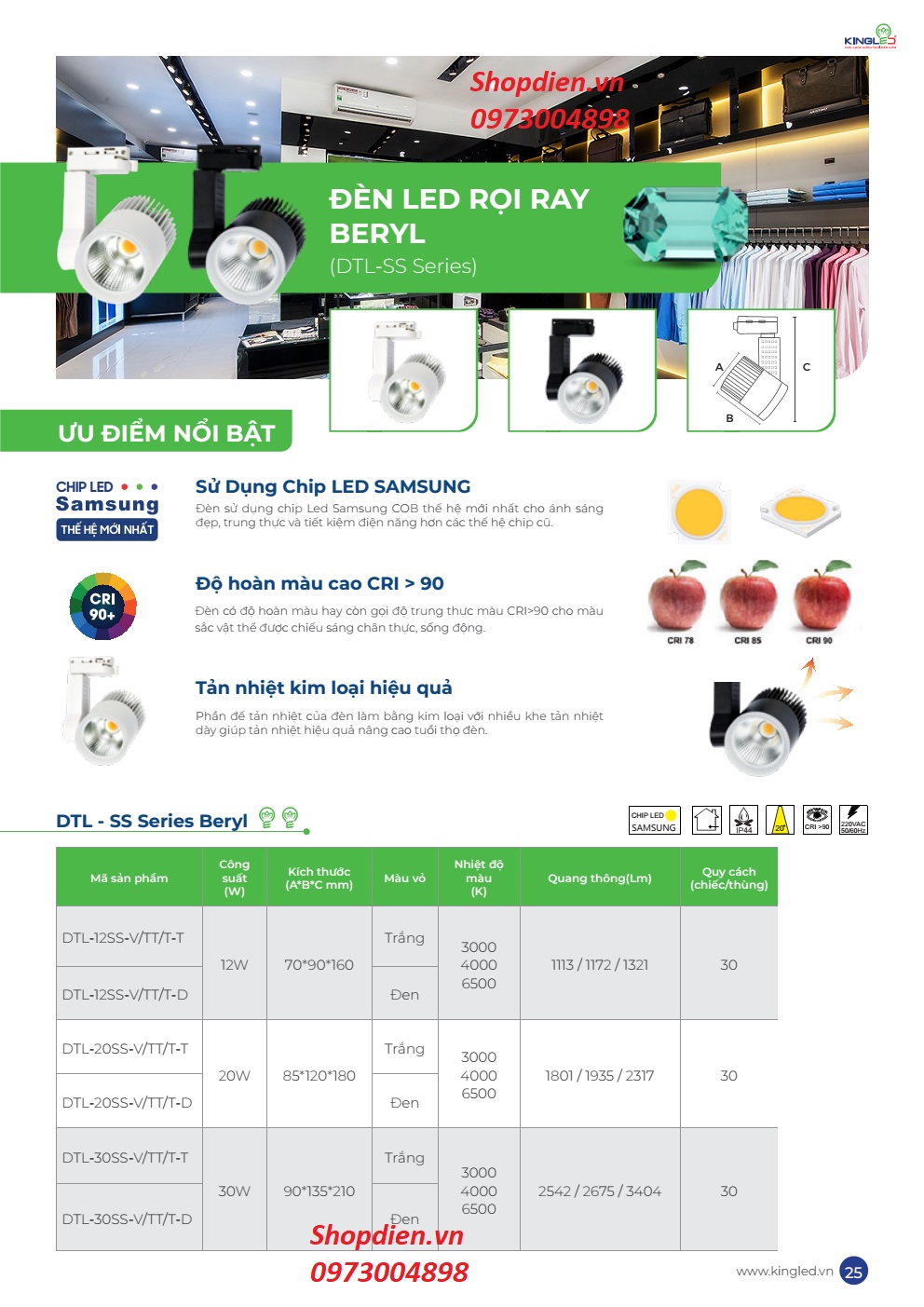 Catalogue : DTL-20SS KINGLED Đèn LED rọi ray 20W BERYL