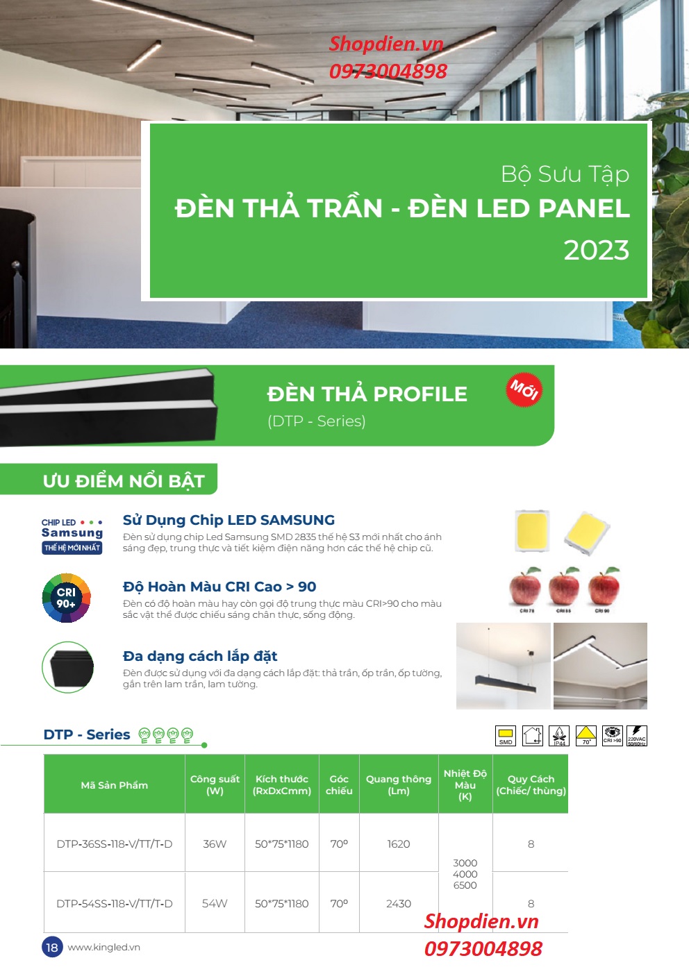 Thông số kỹ thuật đèn thả văn phòng 36W DTP-36SS-118 Kingled: