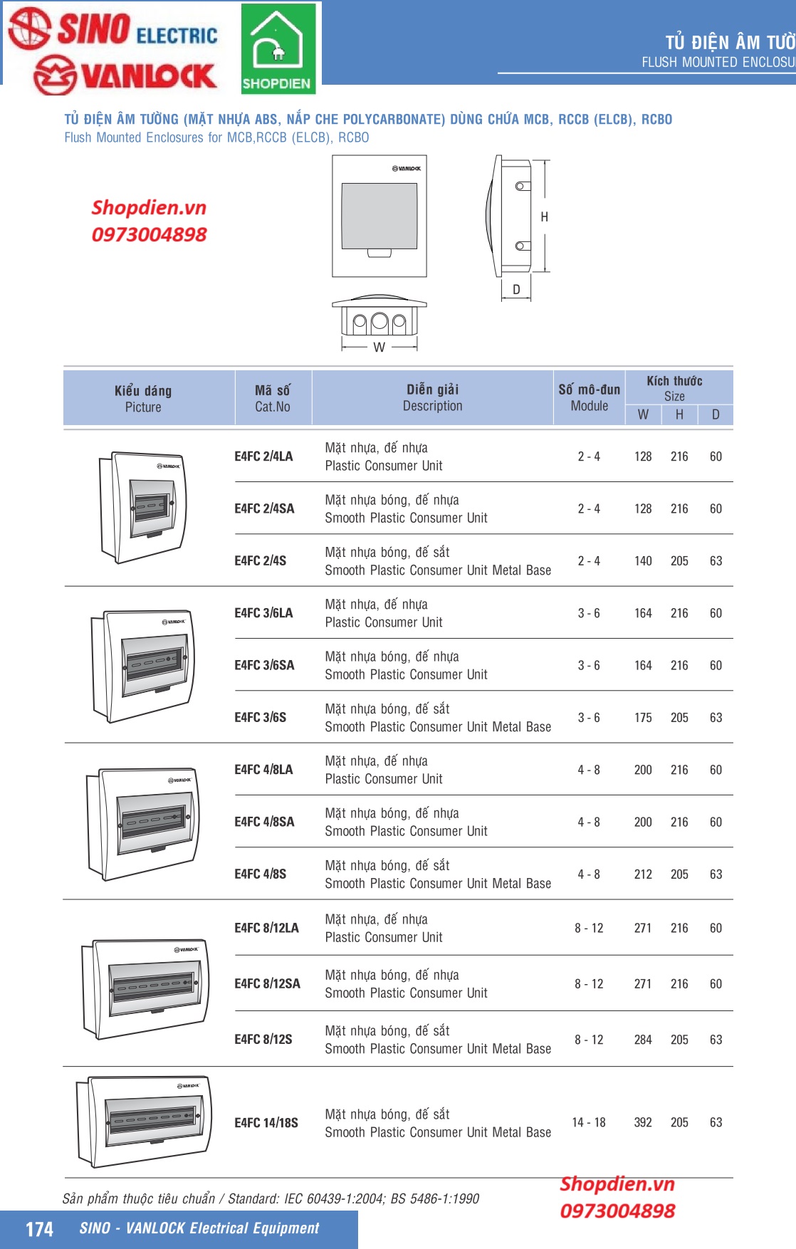Catalogue E4FC14/18LA SINO Vanlock Tủ điện âm tường 18M
