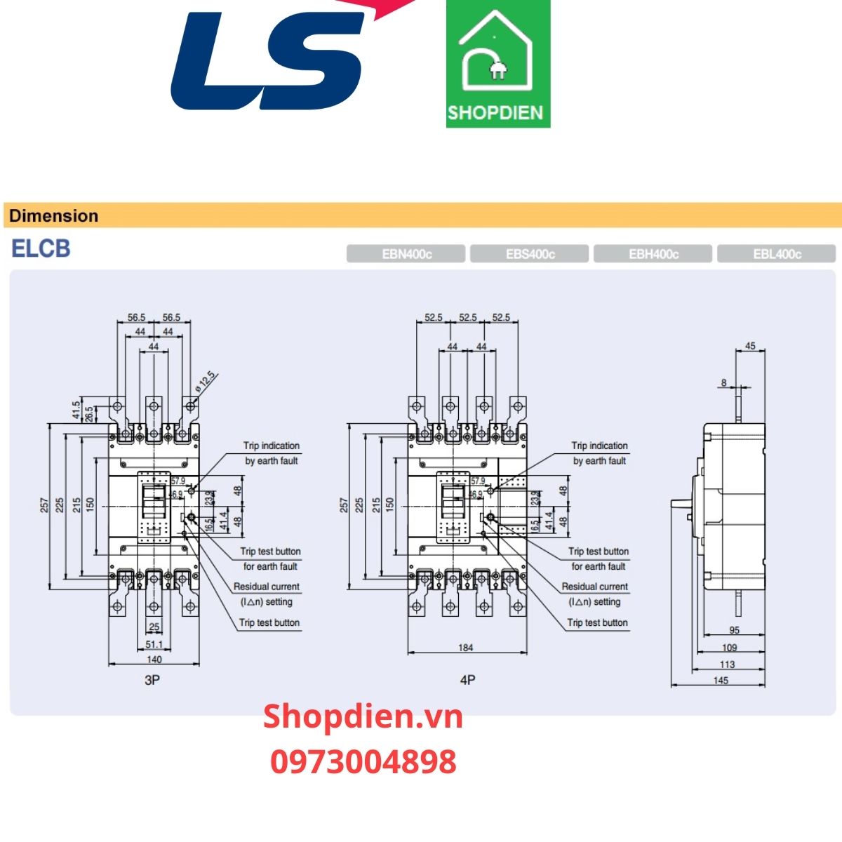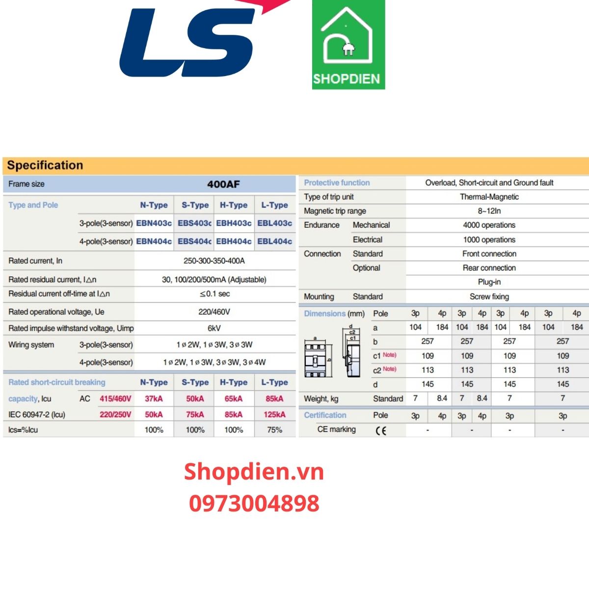 TÊN SẢN PHẨM: EBN403C LS ELCB 3P 300A Aptomat chống rò chống giật điện