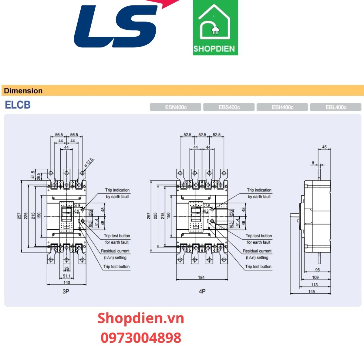 TÊN SẢN PHẨM: EBN404C LS ELCB 4P 400A Aptomat chống rò chống giật điện